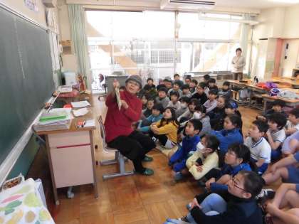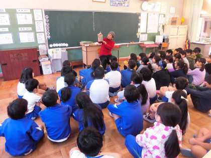 山ちゃんの読み聞かせが行われました。素晴らしい姿勢で話を一生懸命聞くことができました。