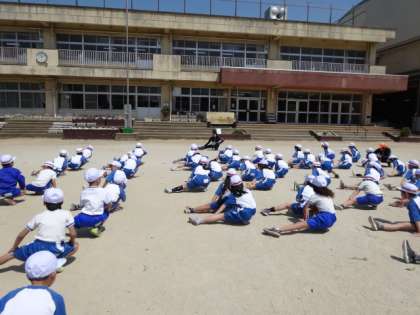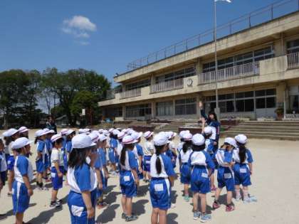 はじめの体育は,合同体育でした。整列の仕方やサーキットトレーニングの仕方を勉強しました。