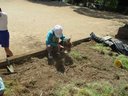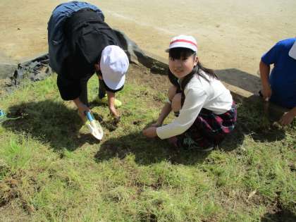 総合的な学習の時間に田植えをします。その日に備えて,まずは草取りです。