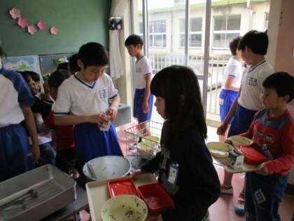 片づけも自分でやります。給食当番は6年生と配膳と片づけを最後までやりました。