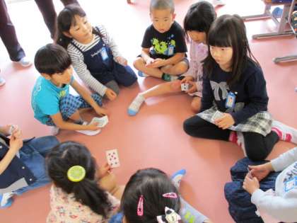 室内遊びをしています。お絵かきや読書をして,室内でも仲良く安全に過ごすことができました。友達と楽しく,トランプでも遊びました。