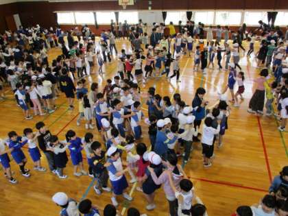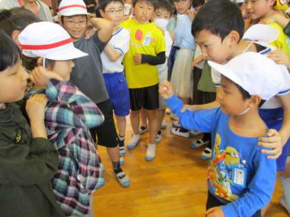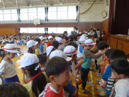 1年生が一緒に楽しめる「じゃんけん列車」を全校生徒で行いました。最後は,1年生と3年生での決勝戦でした。2年生から,メダルのプレゼントがあり,にこにこ笑顔の1年生でした。