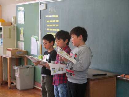 1組は,国語の音読発表会。2組は道徳で「世界にひとつだけの花」の勉強をしました。子どもたちは「緊張する〜」と言っていたり,最初,少しいつもより顔がかたかったりしていましたが,おうちのかたに見守られなかがら,やっぱり嬉しそうな様子でした。