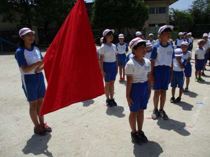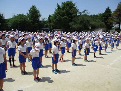 全校児童で,開会式の練習をしました。あいさつや礼の動きなどを確認しました。どの子もやる気に満ちあふれ,真剣な様子で取り組んでいました。