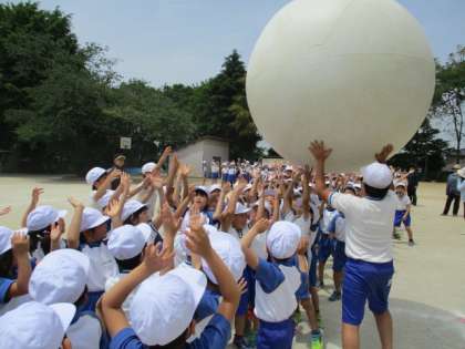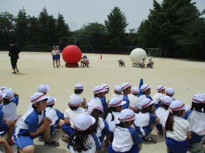 1年生から6年生までみんなで大玉を送っていきます。今日は1対1で引き分けでした。本番はどんな結果になるか楽しみですね。