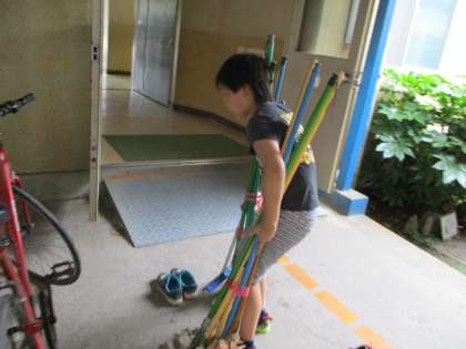 運動会に向けて,体育倉庫の片付けを6年生で行いました。素早く協力しながら,てきぱきと整理整頓をしました。