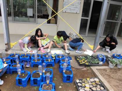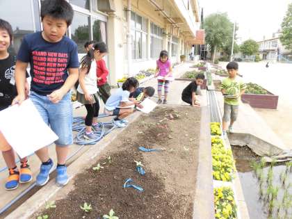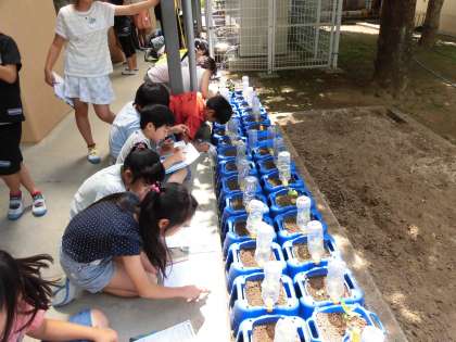 植えた植物がどれくらい大きくなったかな?食い入るように観察しました。