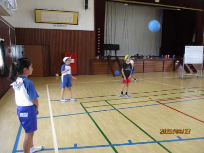 体育では,ソフトバレーボールの学習が始まりました。チームごとに声を掛け合い,練習にも熱が入っています。チームで心を一つにして,勝利に向かって頑張ってほしいです。