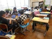 3校時、4年1組は総合的な学習です。SDGSについて、グループに分かれてプレゼンテーションを作成しました。3人グループで、様々なトピックで取り組んでいます。地球温暖化、ごみ問題、エネルギー自給率など...