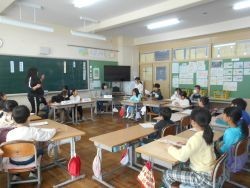 4校時、5年2組は体育です。課題は「試合の難しいところは、どんなこと?」ハンドボールに挑戦していました。3人組で行いました。パス回しも速く、ゴールも迫力があります。ゴールキーパーはいないので、全員が...