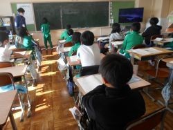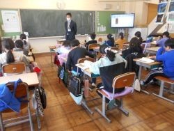 3・4校時、1年生は近所の幼稚園、保育所の年長さんと交流会です。会の進行、年長さんに校内案内や説明などを行いました。1年生も年長さんも、始めは少し緊張気味でしたが、一緒に校内を回るうちに打ち解けてき...
