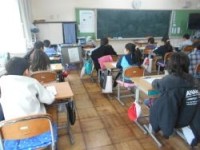 1校時、3年2組は音楽のテストです。今までのまとめの問題で、放送を聞いて答える問題です。歌い方、楽器の種類、リズム、音階など、あまり慣れていない言葉もあり、難しいようですが、がんばって取り組んでいま...
