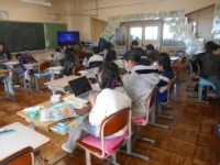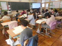 5校時、6年2組は外国語です。本時の課題は「中学校でしたいことや将来の夢について聞き取ろう」動画を視聴して、様々な質問に答えます。皆、よく聞き取れています。内容を考えて、自然に「~だよ」と答えが出ま...
