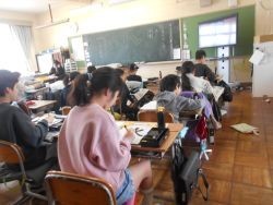 4校時、5年2組は理科です。本時は「生命のつながり」プレゼンテーションの作成です。タブレットが大半ですが、中には紙で作成している子もいます。「受胎」「胎児の成長」と、今までに学んだことをまとめていき...