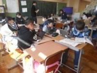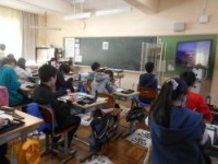 1校時、5年2組は国語です。課題は「自分の考えが聞き手に伝わるように発表しよう」小グループ内での発表です。先生からは、「事実と考えが分かるように発表を」との指示がありました。発表の際は、タブレットで録...
