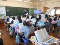 4校時、4年1組は音楽です。本時は鍵盤ハーモニカで「茶色の小瓶」のテストです。まず、きれいな音で全体練習をしました。次いでテストです。一人ずつ、自分の席で演奏します。待っている人、終わった人は、漢字練...