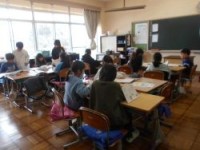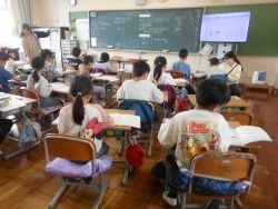 4校時、3年1組は外国語活動です。本時は、1年間の総まとめとして、「アルファベットの歌、色、果物、簡単な英語の文」などを、ゲーム形式で総復習しました。皆、楽しそうに、生き生きと活動に取り組みました。最...