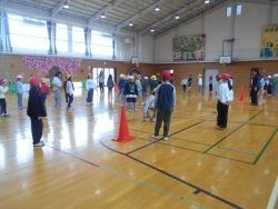 3校時、1年生は体育館でクラスごとにレクリエーションをしました。1組は「はないちもんめ」男女関係なく、仲よく手をつなぎ、大いに盛り上がっていました。作戦タイムなども取り入れながら、大きな声で楽しそうに...
