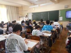 2校時、6年2組は社会です。本時の課題は「武士とは、どのような人々なのだろう」まず、武士がどのようなものかイメージをしました。次に、先生から「なぜ武士が現れたのか?」と問題が出され、自分の考えをまとめました。「武士ってなんだろう?」「武士はいたのだろうか?」から、様々に考えを広げていました。様々な疑問をもてるところがよかったです。6年1組は家庭科です。本時も、ナップザックつくりを進めていました。すでに終わっている子も出てきましたが、ボランティアの方と楽しそうにミシンを動かしている子もたくさんいました。完成間近のようです。