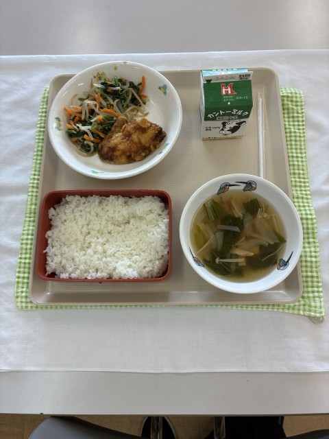 ほっけのカレー揚げ、もやしのねぎだれあえ、チンゲン菜のスープです。