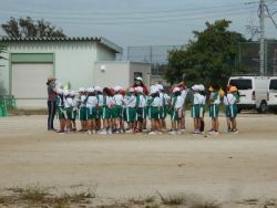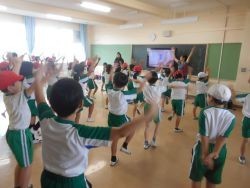 2校時、2年生は学年体育です。少し雨が降っていたので、初めに集会室でダンスの練習をしました。雨が上がったので、校庭で徒競走の練習をしました。子ども達は、セパレートコースで走るのが少し慣れないようでしたが、一生懸命に走っていました。運動会に向けて、少しずつ気持ちが高まっているようです。