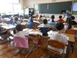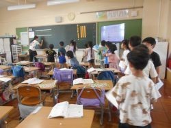 3校時、1年生は算数です。1組は、課題「どうやって計算するのかな?」 まず、①10+7③17-7・・のような計算をしました。次に、①12+3の計算について、考えます。「ブロックを使っても構いません。どうやって考えたかを、言葉でノートに書きましょう」と先生が言いました。1年生にしては、難しいのでは?と思いましたが、『「はじめに、つぎに、そして、」などを使ってみて』とのヒントで、考えが進みました。全員が、一生懸命に考えていました。2組は、課題「数をかぞえましょう」まず、10のまとまりを確認しました。「簡単すぎ~」などの声も聞かれました。本時のまとめとして、①20から下に数える②5とびに20から数える③2とびに20から数える、に挑戦しました。先生に聞いてもらい、合格したらOKのサインがもらえます。合格して、うれしそうな表情がたくさん見られました。