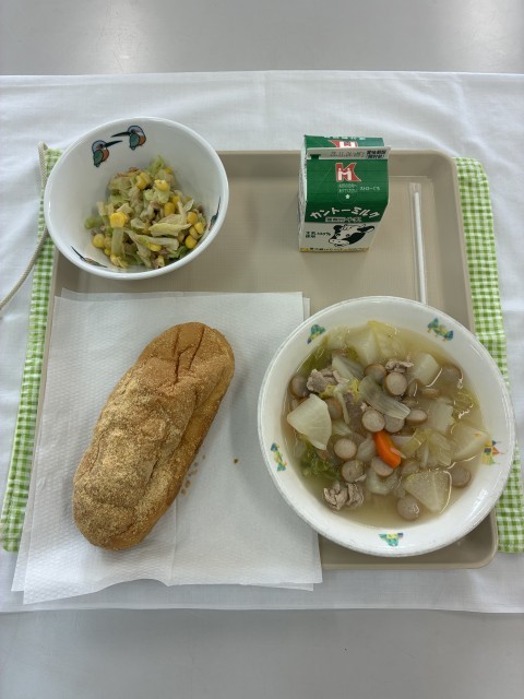 本日のメニューは、ツナサラダ、ポトフ、きなこ揚げパンです。
