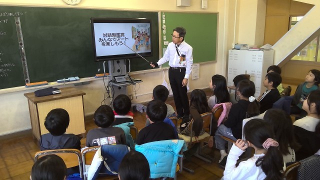 3年生は取手駅のアトレや教室で、専門の先生と一緒に対話型鑑賞をしてきました。今日は初めて学校の先生と児童だけで対話型鑑賞を行いました。1枚の絵画を使って、自由な発想で鑑賞を行いました。みんなで考えを出し合い、認め合う対話型鑑賞にも慣れてきました。徐々にですが、自分たちだけで1人ひとりが役割をもって、対話型鑑賞を行えるように進めていきます。