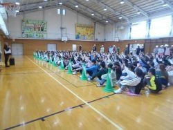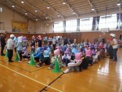 2校時は避難訓練を行いました。本日は、Jアラート訓練です。放送で頭を守る練習、静かに速やかに体育館に集まり、人数を確認する練習等を行いました。6年生、1年生は放送とともに、素早く机の下に身を隠しました。体育館に集まった際、最初に来た6年生・3年生が静かに整然と待機したおかげで、後から来た学年もそれに倣いました。災害はいつ発生するか分かりません。自分ひとりの時に、どうしたらよいかを考えて行動できるようになってほしいです。