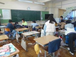 4校時、5年2組は学級活動です。まず、タブレットでアンケート調査を行いました。皆、スムーズにタブレットを使いこなしています。続いて、係活動です。係ごとに集まって、活動内容について話し合っていました。5年生はリーダーが学級活動等で指示を出し、周りの仲間がサポーターとして活動しています。自分たちの活動を、自分たちでコントロールしてやり遂げていくのが、とてもよいと感じています。