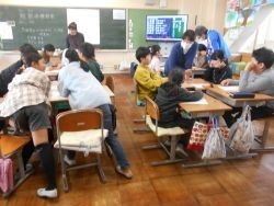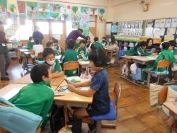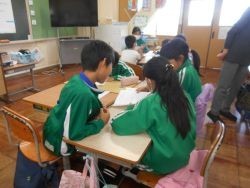 4年生はかすみがうら聾学校より先生をお招きして、難聴についての学習を行いました。2校時は4年2組、3校時は4年1組が学びました。まず、現在行われているデフリンピックについて尋ねられると、ほとんどの子が知っていました。メインは、聞こえずらさについての体験です。ヘッドフォンを装着すると、雑踏の中にいるような音がします。周りの会話が聞き取れるかという体験をしました。「とても不安だった」「怖かった」など、聞こえないことに対する感想を真剣に考えて、発表していました。「近くで話す」「大きな声で話してあげたい」など、子ども達は今後の取組についてもしっかりと考えていました。終わりに、「世界がひとつになるまで」を手話付きで披露して、学びを終えました。