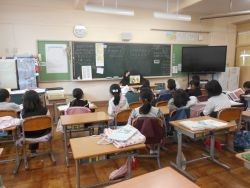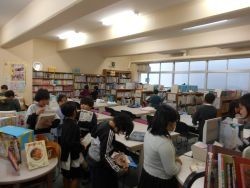 4校時、2年1組は読書の時間です。初めに図書の先生に教室まで来ていただいて、「てぶくろ」という紙芝居を読み聞かせしていただきました。紙芝居の絵や雰囲気に子ども達は興味津々です。話が進むと、「それはダメ」「入っちゃダメ」など、お話の世界に没頭している様子が見られました。読み聞かせの後は、図書室で新しい本を借りました。本に囲まれて、ニコニコしている児童の笑顔が印象的でした。