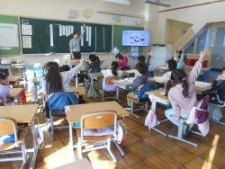 1校時、1年2組は国語です。本時の課題は「おはなし名人になろう!楽しく話をつなぐにはどうしたらよいかな?」相手の話をよく聴いて、楽しく話を続けられるように、あいづちや質問について学びました。本校の今年度の目標でもある、仲間の話をよく聴いて、学びを深めていくことを実践しました。ペアでの対話では、相手の話を笑顔で聴いて、あいづちや一生懸命に質問する姿が見られました。最後の発表にはたくさんのペアが立候補し、発表をしっかり聴き取ろうとする熱心な学びがとてもすばらしかったです。