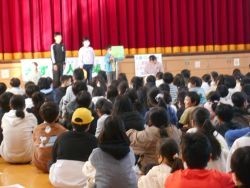 12月10日(水)の午後は、人権集会「きずな集会」を行いました。今年で7回目を迎えました。人権メッセージの発表、あいさつマスターの表彰、仲間とのきずな作りゲーム、手話を使った歌など、実行委員を中心に進めました。毎年恒例の壁画が披露された瞬間は、歓声が起こりました。寺原小学校の児童、職員で作成しました。仲間との絆を考えながら、さらによい寺原小学校にしてほしいです。