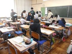 12月17日(水)2校時 5年2組、5校時 5年1組は、どちらの学級も算数です。図形の単元で、問題はどちらも「三角形ABCの面積は?」です。今まで習ったことを基にして、面積の求め方を考えます。2組は、考え方を全体の前で説明しながら、全員で解き方を導き出していました。自分のことばで論理的に説明しようと取り組みました。分かりやすい発表が多かったです。1組はではたくさんの見通しを出した後で、仲間と話し合いました。自分の意見を伝えること、仲間の考えをしっかり聴くことに意欲的に取り組み、考えを深めています。「私は〇〇さんと同じ考え」「〇〇さんの考え方は、難しい」など、自分の考えと比較しながら、よりよい考え方をしようと熱心に学んでいます。