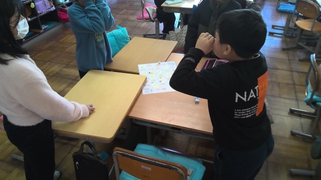 冬休みが明け、3年生の教室に明るく健やかな子どもたちの姿が戻ってきました。5時間目には、新年すごろくを行いました。頭を使ったり、体を動かしたりするマスにとまった時には、とても楽しそうな様子でした。また、ゴールした順番がおみくじになっているので、ゴールの時には大盛り上がりでした。今年の運勢は、何吉だったかな?