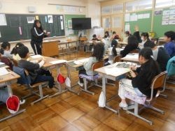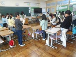 1校時、2年1組は道徳です。題材は「きらきら」。課題は、「身の回りには、どんな美しいものがあるかな?」雪の結晶を見て、どんなことを思ったか伝えあいました。手を挙げてしっかりと発表し、仲間の考えをよく聴いていました。「うぐいすの声で自然が感じられる」など、自分の体験をもとにした考えの発表がすばらしかったです。2校時、2年2組は道徳です。題材は「黒板がにっこりするかな」課題は、「みんなのために働くと、どんな気持ちになるかな」大変な仕事を楽しくできるのはなぜかを考えて、自分の考えを発表しました。授業の最後に、様々な活動をがんばっている仲間に「ありがとう」カードの作成をしました。嬉しそうに、はにかみながらカードを読み上げる姿が、とてもよい雰囲気でした。