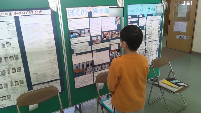 1月26日~1月30日の間、業間休みの時間に自由研究作品の展示を行っています。夏休みに一生懸命考え、取り組んできた友達の作品が展示されています。