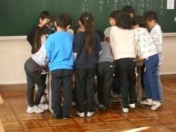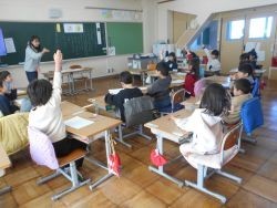 1校時、1年2組は算数です。問題は、「かずの線を見て、あいうえの目盛りが表す数を言いましょう」例題を確認すると、ペアで考えます。指を使ってしっかりと確認します。「70と80の間」「1目盛りが1」「5は線が少し長い」などを先生と確認すると、問題の答え合わせです。目盛りを使って、数を視覚的に捉えます。授業が終わると、「今日の算数楽しかった」と聞こえました。2校時、1年1組は道徳です。課題は「自分の好きな事や、自分のいいところは何かな」皆の大好きな絵本の作者のお話から考えます。「好きなことをしているときの気持ちは?」と先生から問われると「集中している」など難しい答えも出ました。自分について考えるのは難しいので、希望者には先生からヒントも出されました。授業後半に、ペアで自分の好きなことを伝えあいます。皆ニコニコして楽しそうでした。言うのも、聴くのも楽しいようです。