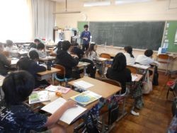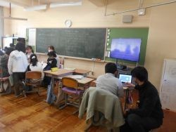 5校時、5年1組は社会です。課題は「自分たちの身の回りでは、どのような自然災害が起きる?」大雨、地震、台風、洪水など、次々に意見が出ます。皆、発言したくてウズウズしています。「洪水の時には、田んぼが水浸しになった」など、自分の体験談を話す子もいました。この後、さらに深く学んでいきます。5年2組は外国語です。課題は「観光案内の内容を考えよう」学習する形態は自分たちで決めていました。ALTの先生や日本人の先生に、熱心に質問をして学びを進めています。英語で「どこに行きたいですか?」と突然質問され「沖縄」と答えると、"Oh!"と、英語でリアクションを返されました。楽しみながら英語を使い、学ぶ姿に驚きました。