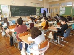 2校時、2年2組は算数です。課題は「4けたの数について、学習したことを身に付けたかな?」今までの復習になります。数が大きくなっても、今までのやり方を使って計算を考える活動です。問題をよく読むと、すぐに鉛筆をとって書き始めました。上の位に繰り上がる数を伴う計算で、とても難しいところです。熱心に学ぶ姿が見られました。問題を解き終わると、ペアで確認をします。相手に分かるように説明しようと取り組みました。