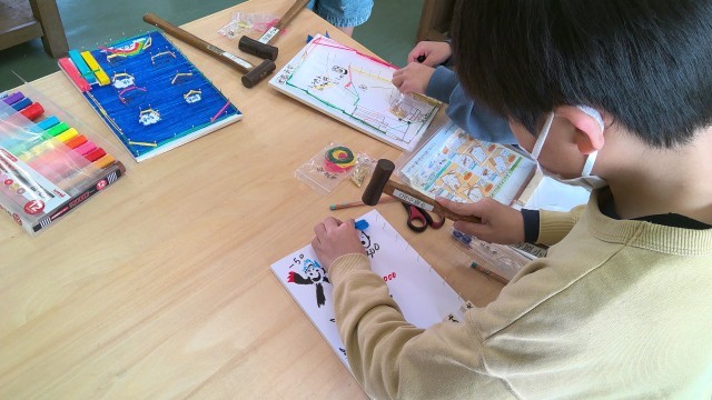 3年生の図工では、「クギウチトントン」の学習を行っています。いよいよ完成が近づき、コリントゲームやダーツゲームなどが出来上がりました。くぎうちも慣れた手つきで、リズムよく制作に取り組むことができてきています。