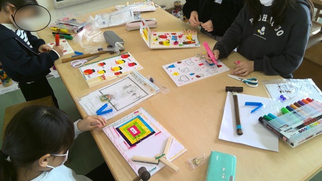 色鮮やかで、工夫されたゲーム板を作ることができました。授業の後半には早く終わった人たち同士で遊ぶ様子も見られました。