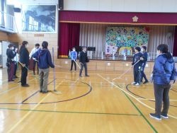 2校時、不審者対応避難訓練を行いました。ある教室に不審者が侵入し、避難する過程をオンラインで視聴してから、体育館で講話を聴きます。不審者役をしてくださった警察署の方から、「いかのおすし」の話。最近増えているSNSを介した不審者との事件等について話をしていただきました。業間休みは、職員も、不審者へのさすまたや消火器を使った具体的な対応方法を学びました。子ども達には、今日の話をしっかりと覚えてもらい、生かしてほしいです。