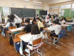 3校時、2年1組は国語です。課題は「文章のどんなところが分かりやすく書けているかな」2つのものを比べ、はじめ、なか、おわりに気を付けて説明する文を書きました。何度か読んで、確認します。その後、グループに分かれて、お互いの文を読み合います。分かりやすく、よく書けていることを仲間に伝えていました。全体の振り返りは、次回にやる予定だそうです。4校時、2年2組は国語です。漢字スキルの見直しをしていました。特に送り仮名が書かれていないものがあったらしく、先生から練習でも送り仮名をきちんと書くなどの大切な部分を伝えました。よい練習の仕方を全員で確認し、張り切って見直しをしました。