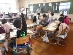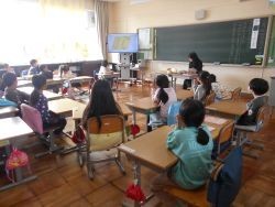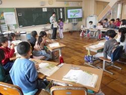 2校時、1年生は道徳です。1組は、『「なわとびカード」 のびのびと生活するために、大切な事はなにかな?』縄跳びの練習中、友達におまけをしてもらって、級があがるかもしれない私について、考える内容です。先生の範読中、「ダメだよ」「え~」などの声があがります。おまけで合格することをよいと思わない子が多いようです。誠実に努力することについて、考えを深めました。2組は『「はしの上のオオカミ」 親切にするとどんな気持ちになるかな?」橋の上で、クマに親切にしてもらったオオカミの気持ちを、役割演技を通して考えます。「親切にしてもらってうれしい」「仲間への意地悪をやめよう」などの考えが出ました。2組は、思いやりについて考えを深めました。どちらのクラスも授業を通して、よく考えていました。