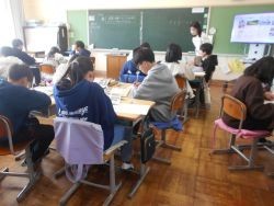 4校時、6年2組は外国語です。 ”I want to be~”を使って、ショートスピーチを作成中でした。これまでの学習のまとめになります。好きなもの、将来何になりたいかを、英語で発表します。本時は、原稿作成。終わった子は、仲間に聞いてもらいながら覚えていました。作成中の子も、何を伝えるかALTの先生とも相談しながら進めていました。発表が楽しみです。5校時、6年1組は社会です。課題は「産業の発展により、人々の生活はどのように変化したのだろう」ワークシートにまとめながら、考えます。教科書や仲間の考えを参考にして、熱心にまとめていました。6年生の授業も残りわずかになってきましたが、どちらのクラスも熱心に取り組んでいました。