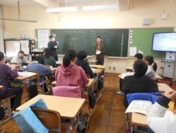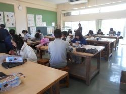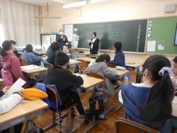 4校時、6年1組は図工です。フォトボックスの制作をしました。本時の課題は「まわりを彫って、きれいに紙やすりでけずり色をぬろう」彫刻刀を上手に使って、自分のデザインをもとに彫り進めています。やすりで丁寧に磨き続ける子、彩色をしている子もいました。キリで穴を開けるのも上手にできて、さすが6年生です。完成が楽しみです。5校時、6年2組は外国語です。課題は、「中学校でしたいことや将来の夢について聞き取ろう」原稿やヒントを見ずに発表する子が多くいました。「大きな声で、分かりやすく発表できたのが、とてもよかった」とALTの先生からも褒められました。ジェスチャーをつけて発表したのも、分かりやすくてよかったです。