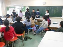 5校時、今年度最後の登校班会議を行いました。6年生が卒業するため、新しい班の確認です。1年間の反省、新名簿つくり、班長バッジの引継ぎなどがありました。6年生からのあいさつと5年生からのお礼の言葉がありました。帰りは、新しい班長が先頭に立ち、少し緊張しながら安全に気を付けて下校していました。