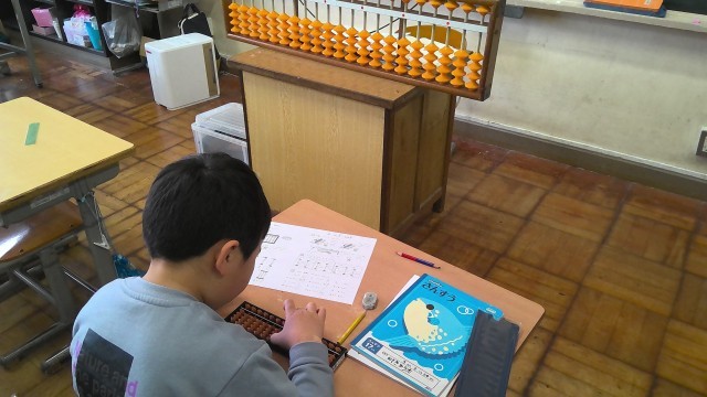 3年生の算数では、そろばんの学習を行っています。初めてそろばんを見て・触る児童も多くいる中でしたが、授業の後半には簡単な計算ができるようになりました。次回は繰り上がりのある計算にもチャレンジをします。